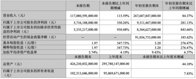 今年前三季度,比亚迪实现营收2676.88亿元,同比增长84.37%;净利润为93.11亿元,同比增长281.13%。另外,比亚迪前三季度经营活动产生的现金流量净额为910.37亿元,增幅高达185.62%。